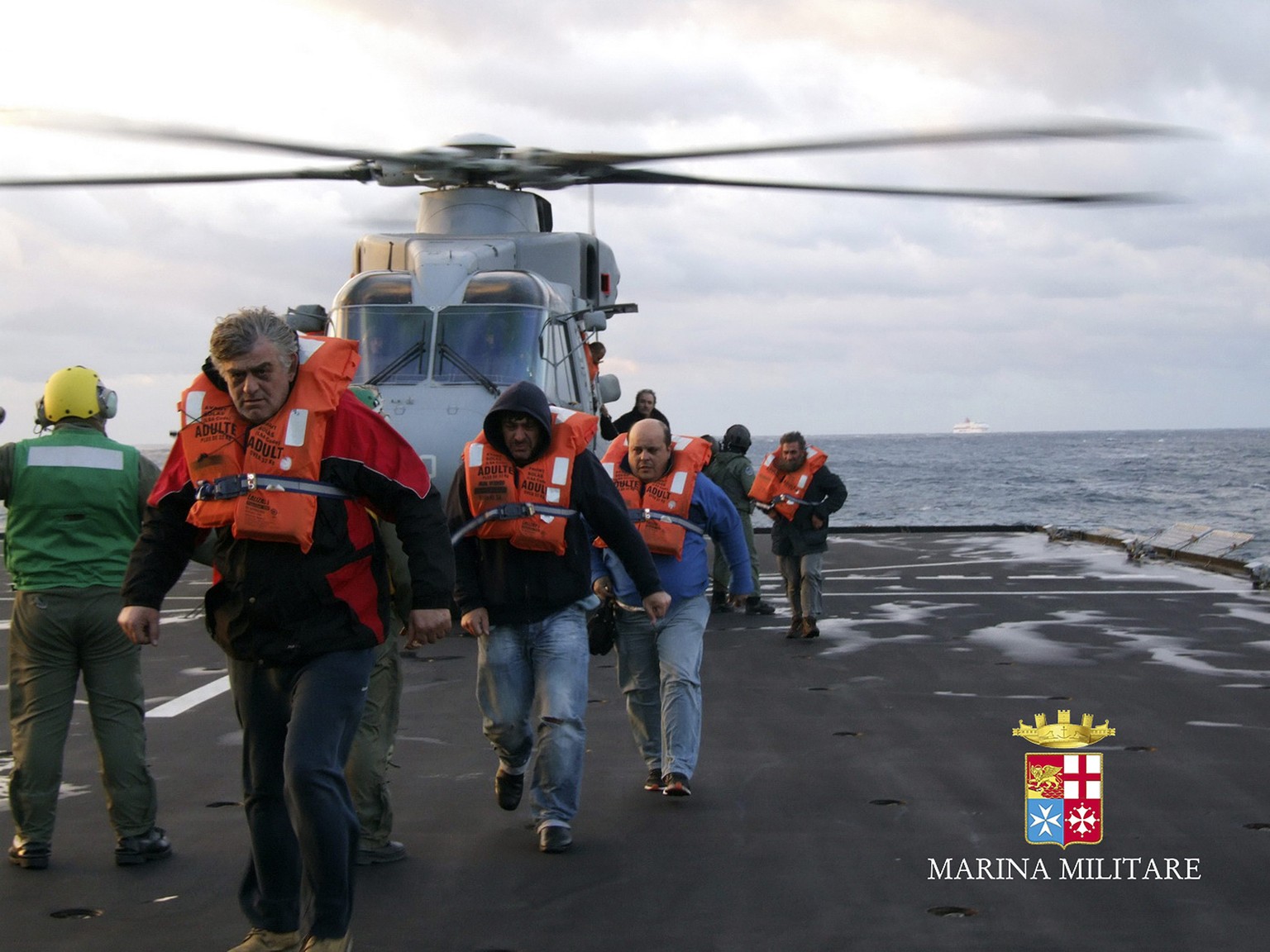 Überlebende des Unglücks werden in Sicherheit gebracht.