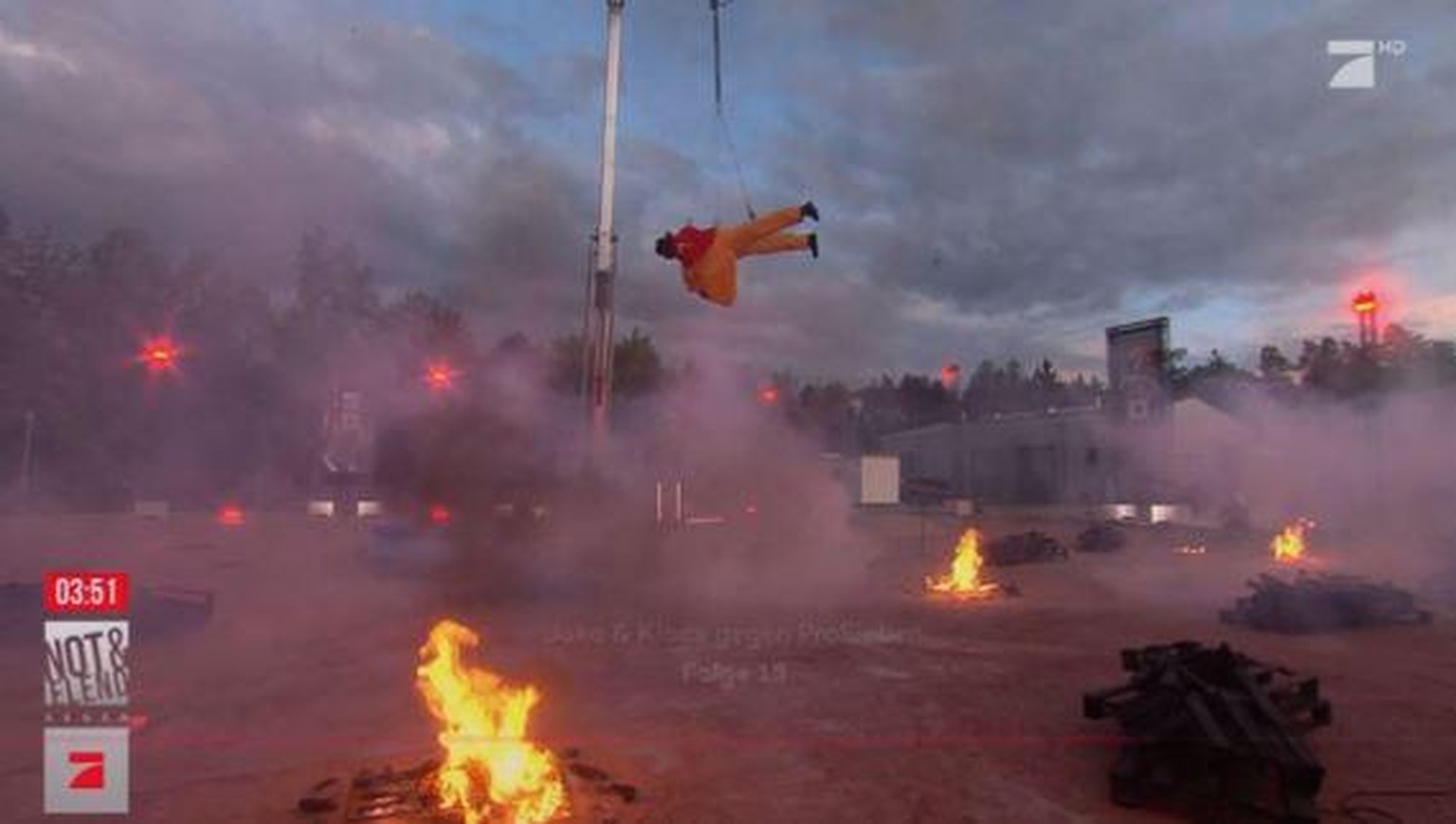 Joko schwebte als menschliches Löschflugzeug durch die Luft.