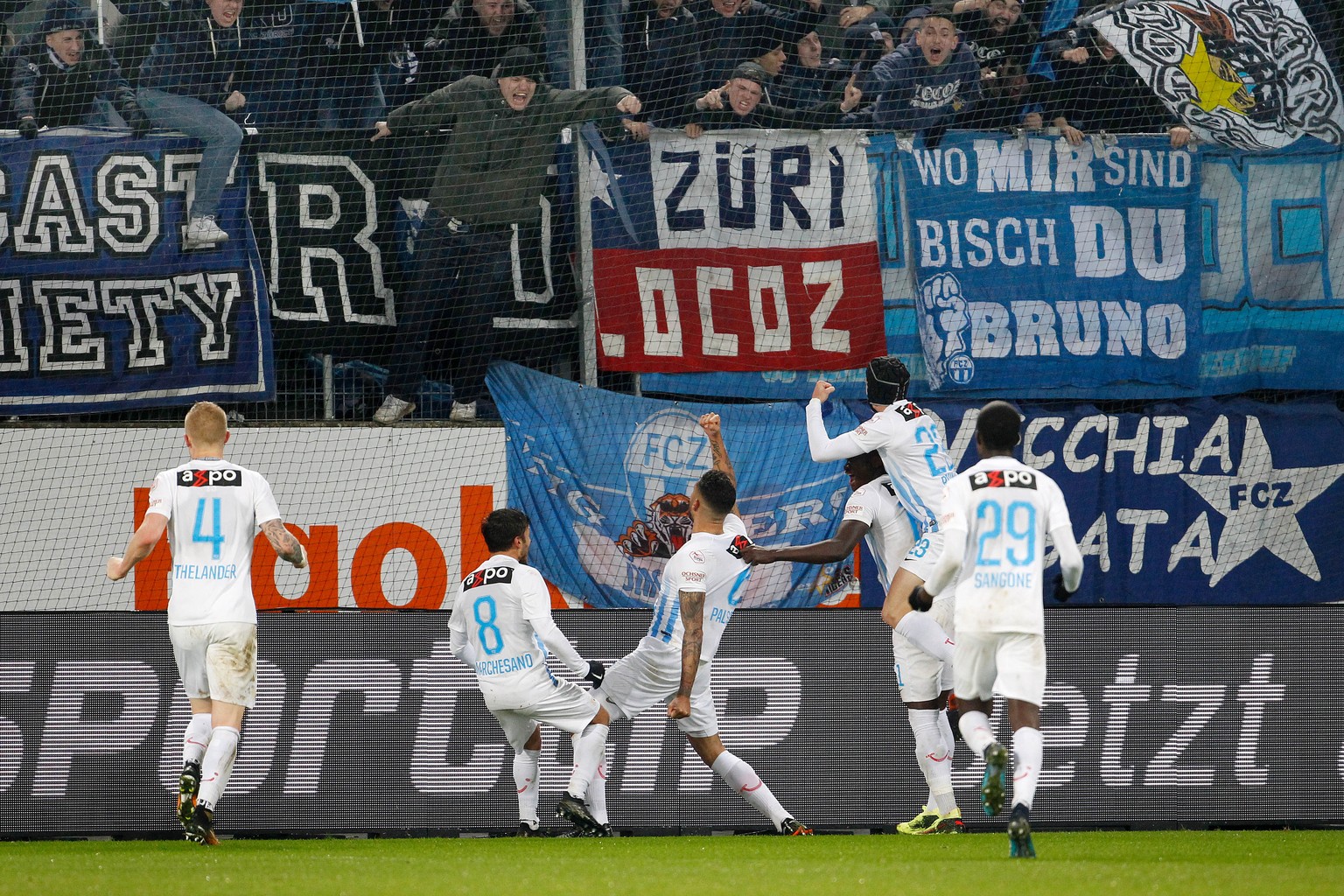 FCZ-Spieler und Fans feiern den Siegtreffer.