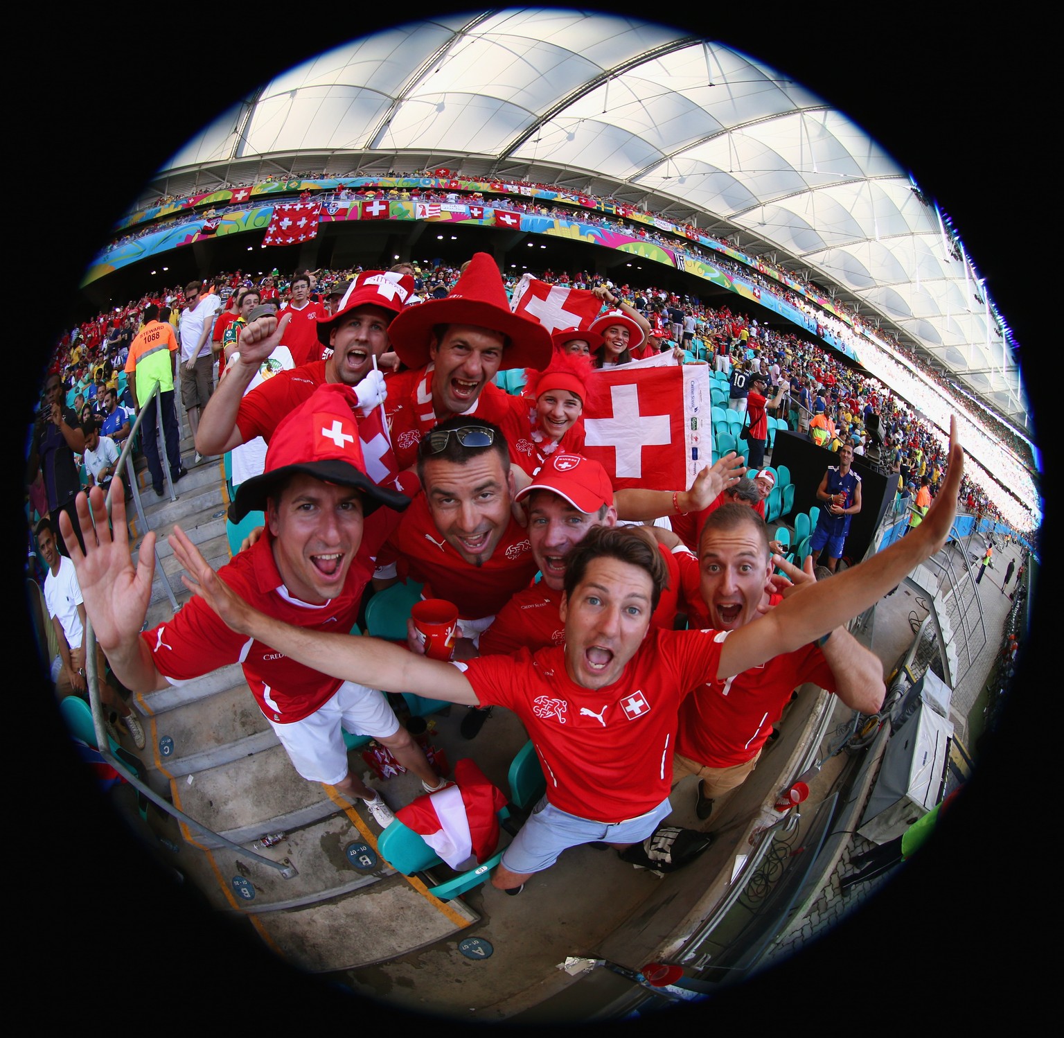 Schweizer Fans beim WM-Spiel gegen Frankreich. Das Bild wurde wohl vor dem Spiel, das mit einer 2:5-Klatsche endete, aufgenommen …