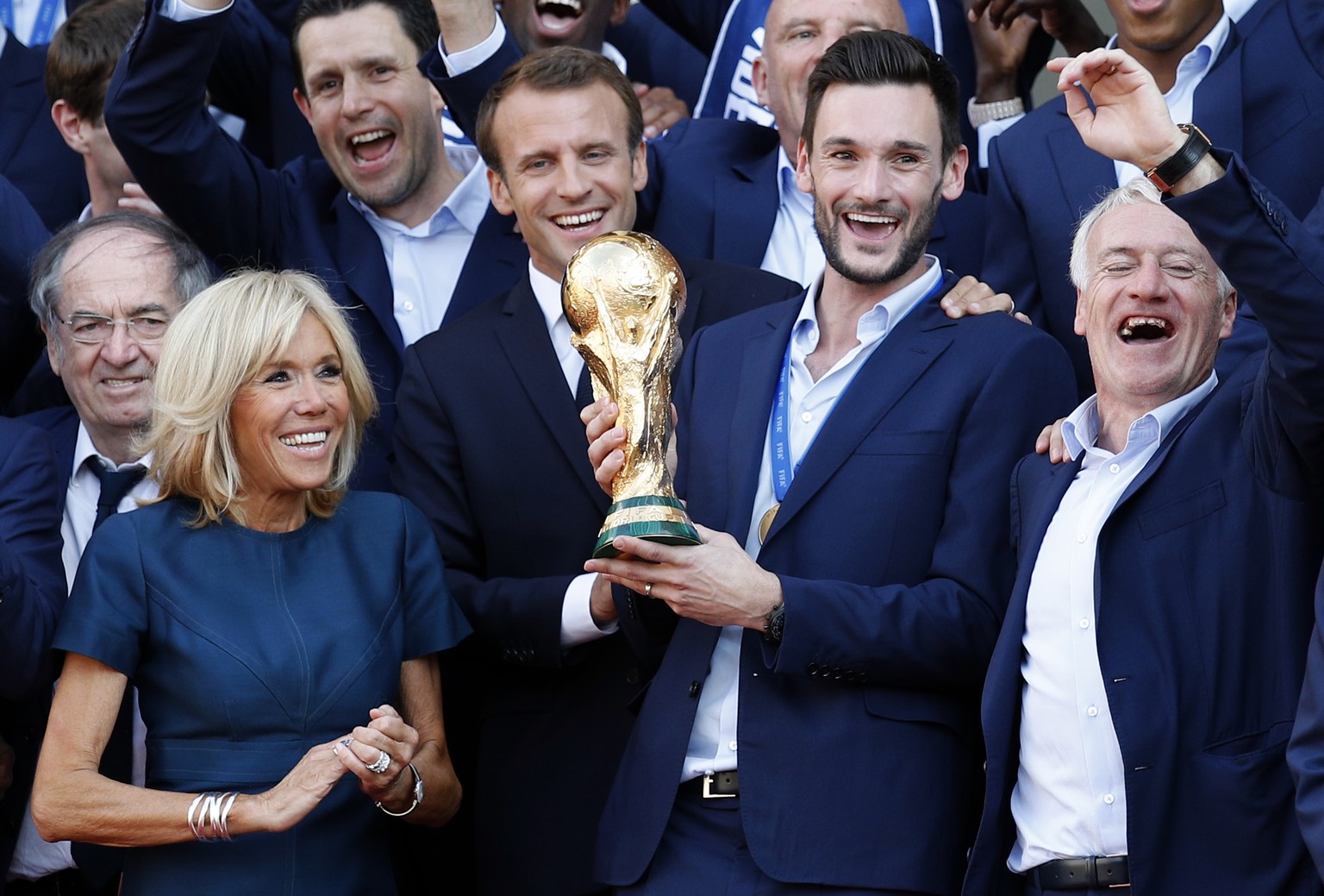Emmanuel Macron und Ehefrau Brigitte beim Empfang der Weltmeister am Montag im Elysée-Palast.