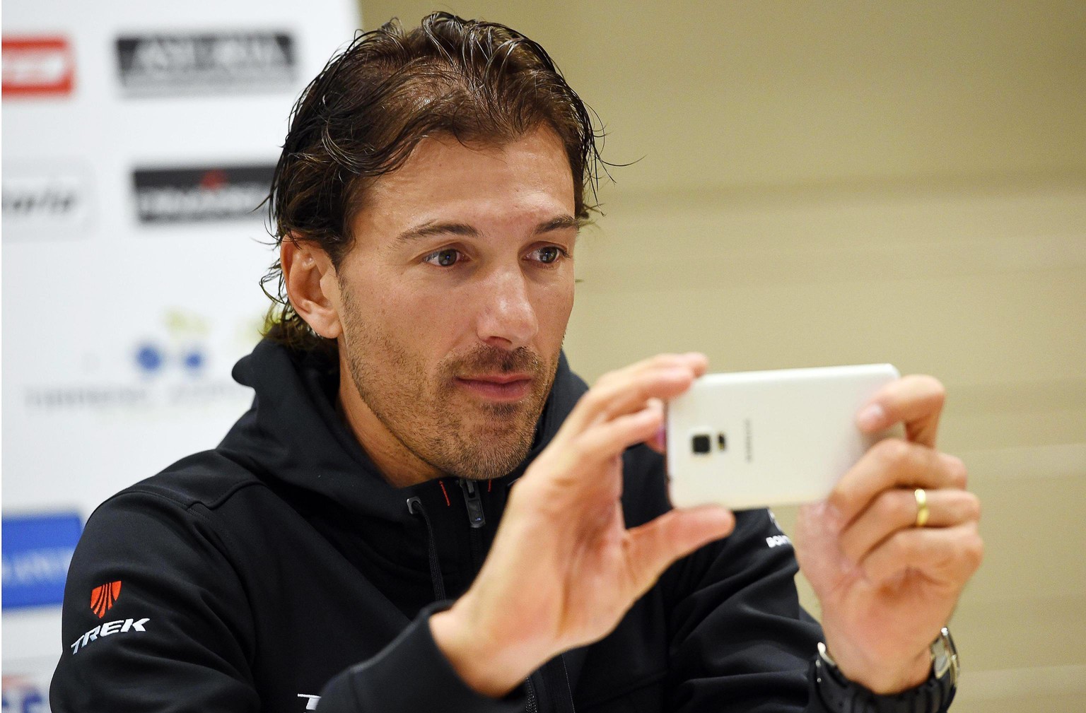 epa04656393 Swiss cyclist Fabian Cancellara of the Trek Factory Racing team attends a press conference of the Tirreno-Adriatico cycling race at Lido di Camaiore, Italy, 10 March 2015. The Tirreno-Adriatico cycling race will take place from 11 to 17 March 2015. EPA/DANIEL DAL ZENNARO