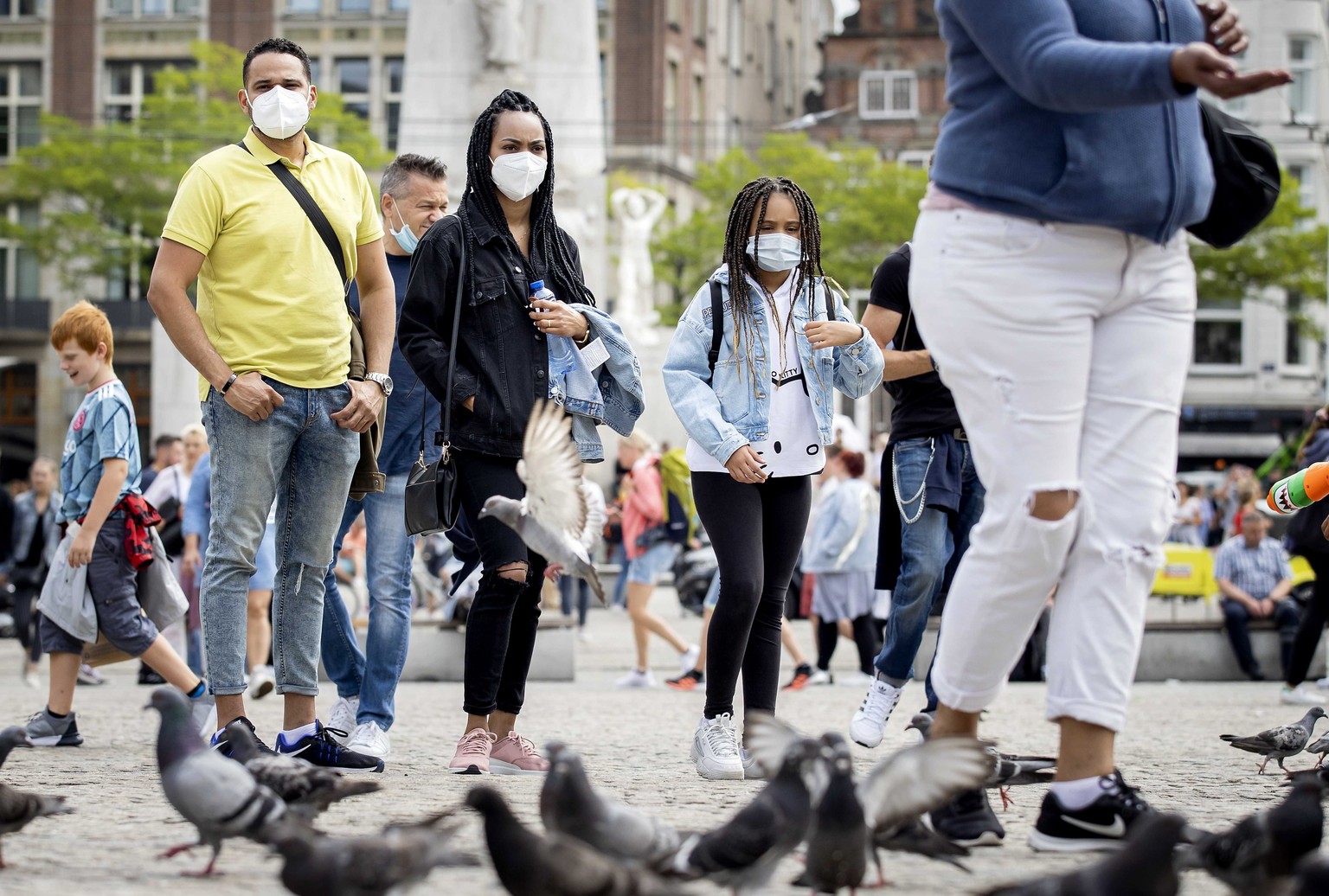 epa08562753 Tourists and day-trippers on Dam Square in Amsterdam, The Netherlands, 23 July 2020. The municipality of Amsterdam is taking extra measures against the crowds and hopes to prevent the further spread of the coronavirus. EPA/KOEN VAN WEEL