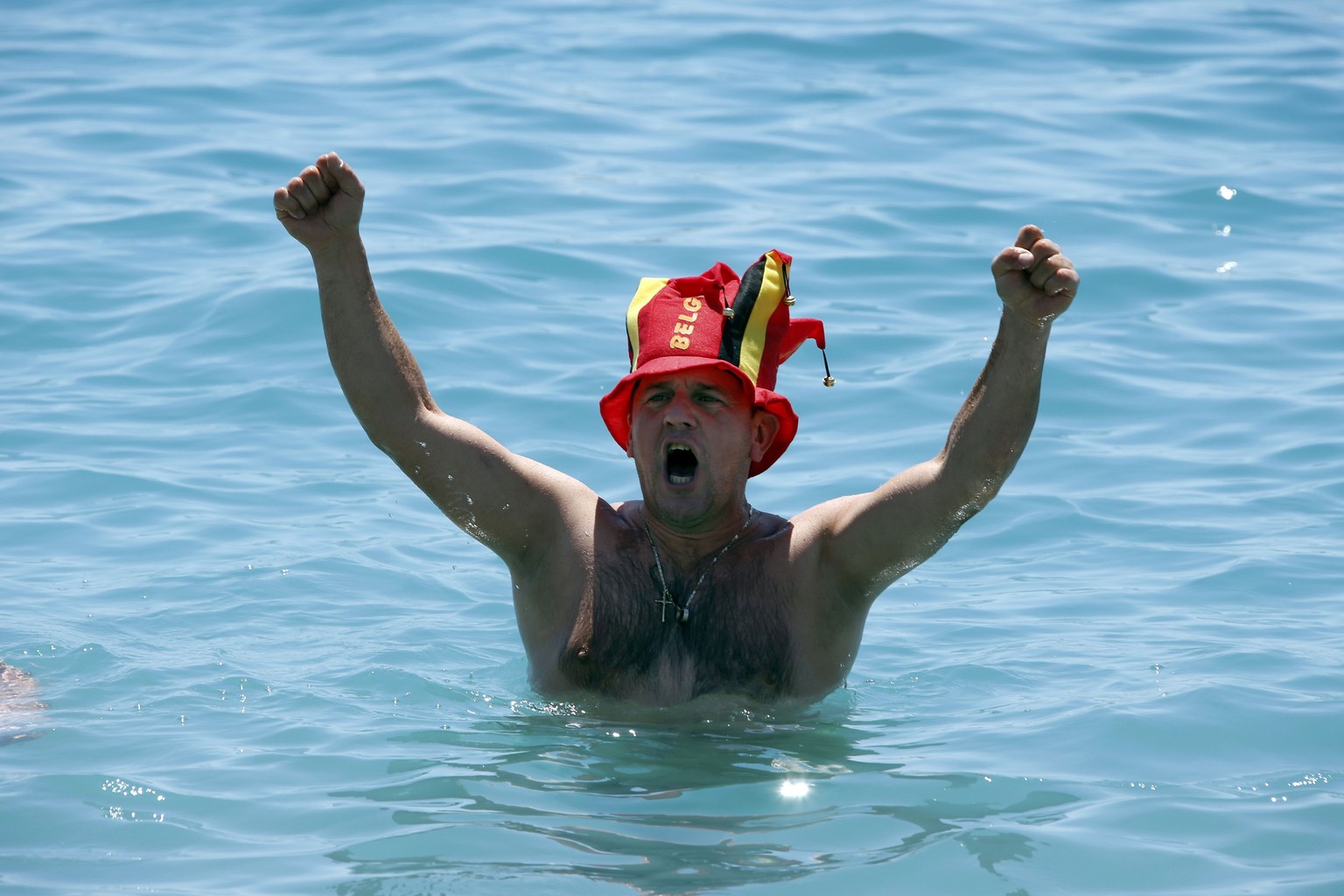 Football Soccer - Euro 2016 - Nice, France, 22/6/16 - A Belgium fan enjoys the beach ahead of the game against Sweden in Nice, France. REUTERS/Eric Gaillard