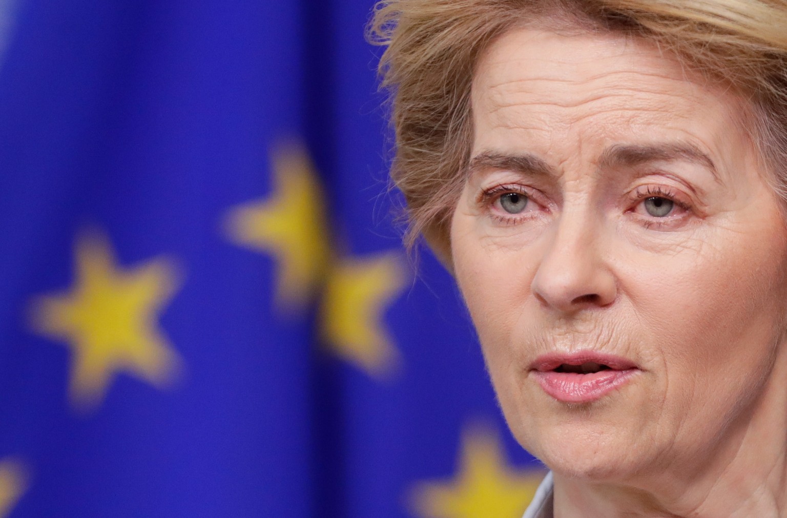 epa08283511 European Commission President Ursula Von Der Leyen gives a press statement on Coronavirus/ COVID-19 at the European Council, in Brussels, Belgium, 10 March 2020. EPA/STEPHANIE LECOCQ