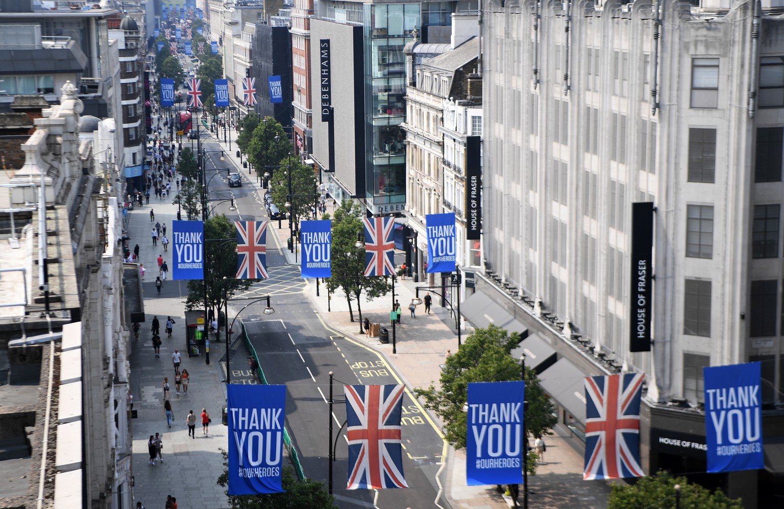 epa08599382 A quiet Oxford Street in London, Britain, 12 August 2020. According to news reports, the UK is now officially in recession. Britain is set to experience its worst recession on record after data showed the Coronavirus sent the UK economy plunging by over twenty percent for the second quarter of 2020. EPA/ANDY RAIN