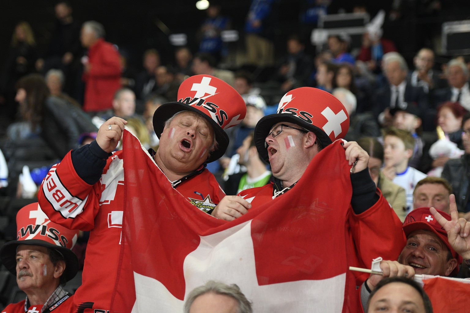 epa05953507 Swiss supporters during their Ice Hockey World Championship group B preliminary round match between Switzerland and France in Paris, France on Tuesday, May 9, 2017. EPA/HERVE RANCHIN