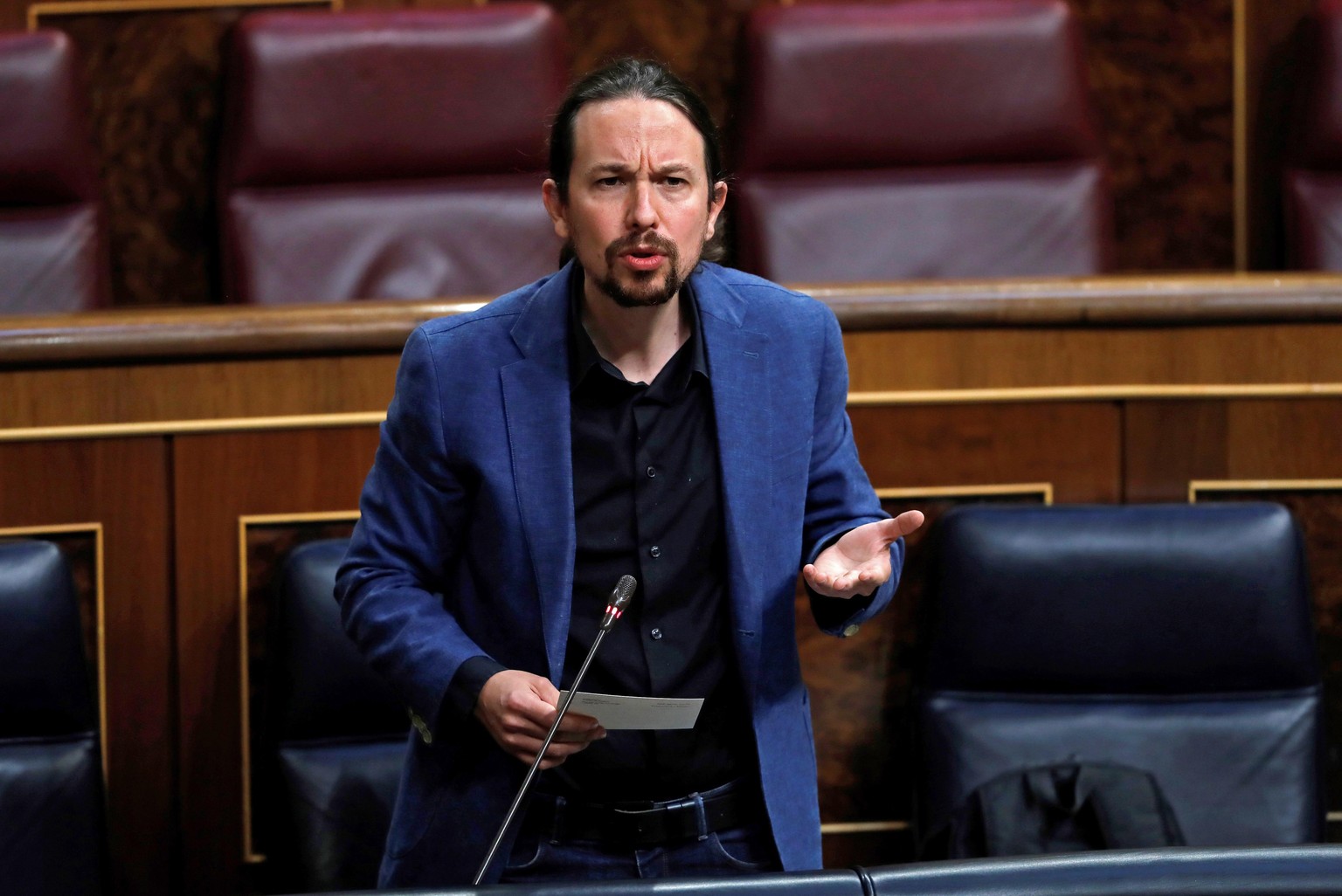 epa08446429 Spanish second Deputy Prime Minister, Pablo Iglesias, intervenes during question time at the Lower House in Madrid, Spain, 27 May 2020. EPA/Chema Moya