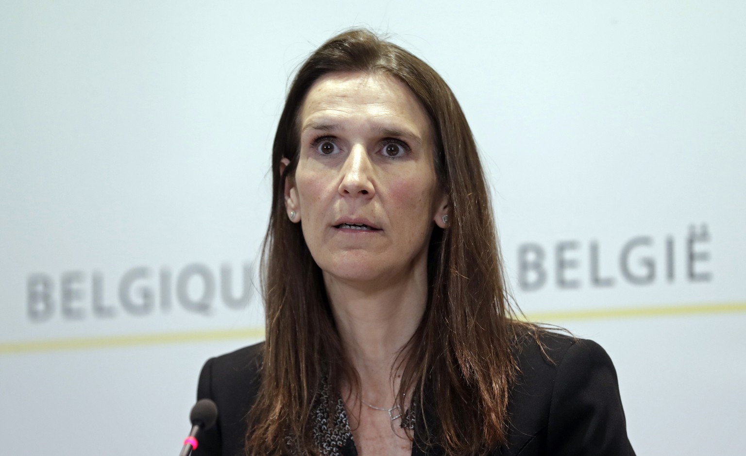 epa08290727 Belgian Prime Minister Sophie Wilmes holds a news conference after a national security council meeting on coronavirus, in Brussels, Belgium, 12 March 2020. The Belgian prime minister announced the closure of schools as new measure to tackle the spread of the pandemic coronavirus. EPA/OLIVIER HOSLET
