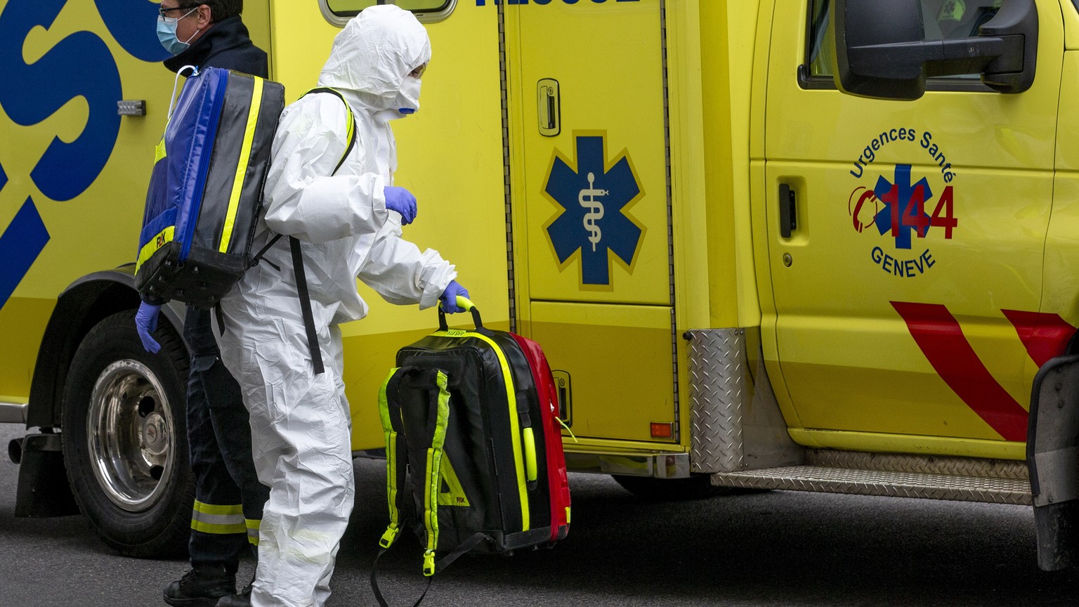 epa08291955 A paramedic wearing protective gear as a precaution against the spread of the coronavirus COVID-19 leaves the ambulance car before an intervention with a patient suspected of having contracted the Covid-19 virus, in Geneva, Switzerland, 13 March 2020. EPA/SALVATORE DI NOLFI