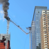 Kran kracht nach Feuer mitten in New York City in ein Gebäude