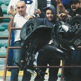 Inter-Fans werfen im San Siro einen gestohlenen Roller über eine Brüstung