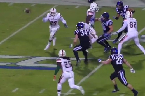 Du glaubst, für den weissen Running Back ist hier Endstation? Denkste! Er zeigt gerade den besten Football-Lauf der Geschichte