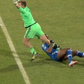 Was für eine lustige Verwarnung! Drogba hält den Keeper, bis er fällt