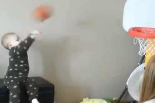 Während andere Babys noch mit öden Rasseln spielen, ist dieser 15-monatige Bube schon fast reif für die NBA