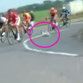 Unachtsamer Fussgänger läuft mitten in ein Radrennen und verursacht Massensturz