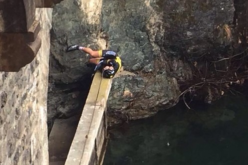 Was für ein Dusel! Rad-Profi überlebt beim GP Lugano Sturz von 12-Meter-Brücke