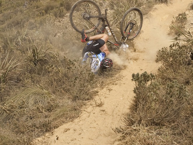 Unglaublich, dass bei diesem spektakulären Abflug nur das Velo schrottreif ist