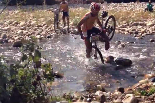 Mit dem Rennvelo mal rasch diesen Felsbrocken hinauf fahren? Wieso auch nicht!