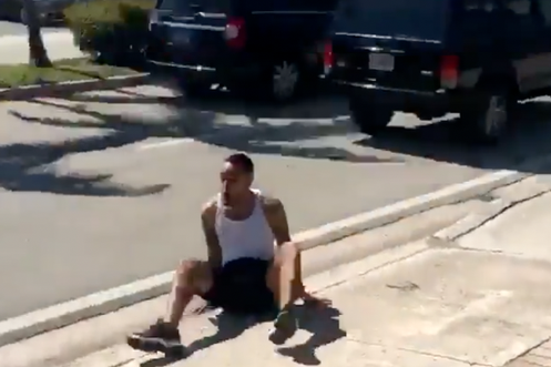 Jogger wird von Dinosaurier gejagt