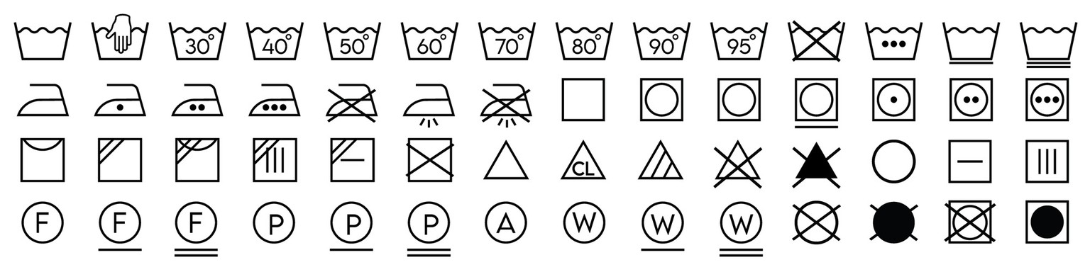Die Antwort auf all diese Fragen findet sich meistens auf den Etiketten des jeweiligen Kleidungsstückes. Aber, weil das ja sonst viel zu einfach wäre, ist sie perfid verschlüsselt. In Form von absolut nichtssagenden Piktogrammen und Symbolen, die ein wenig an die Hieroglyphen aus der Zeit der Pharaonen erinnern.