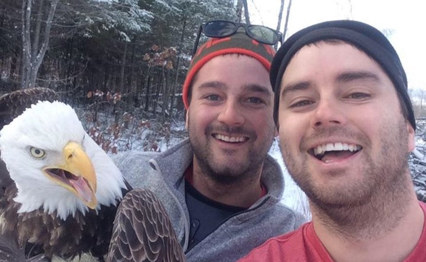 Als die Rettungsaktion glücklich beendet ist, kommt es zu einem unglaublichen Moment: Der Greifvogel lässt sich mit seinen beiden Lebensrettern fotografieren – wie ein zahmes Haustier. Dabei sind Weisskopfadler ansonsten extrem scheu. Offenbar für alle Beteiligten ein Erlebnis, dass sie nie vergessen werden. Die Facebook-Gemeinde ist begeistert – das Video wurde bereits über 50'000 mal angeschaut. (oku)