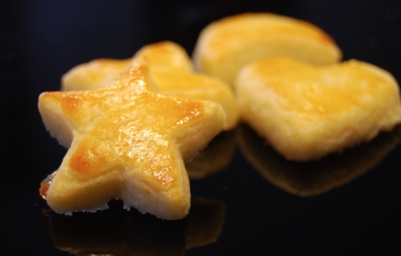 - Teig circa 5 Millimeter dick auswallen. Forme ausstechen und bei 200 Grad für 12 Minuten backen.