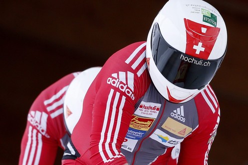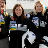 17.01.2010: Füdligate in St. Moritz – Bob-Weltmeisterin Gillian Cooke platzt am Start der Hosenboden