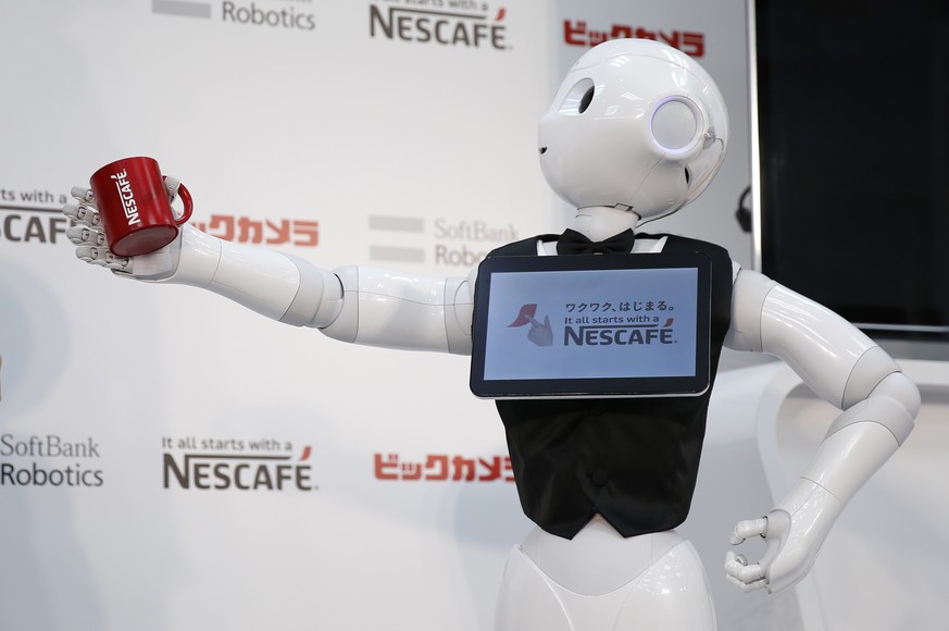 «Pepper» trug zu diesem Anlass eine schwarze Butler-Weste und eine schwarze Fliege. «Es handelt sich um einen völlig neuen Ansatz der Kommunikation mit den Kunden», sagte eine Sprecherin von Nestlé. Die 1,20 Meter grossen Roboter auf Rollen können Erläuterungen zu den verschiedenen Produkten geben und sollen interaktiv mit den Kunden kommunizieren können.