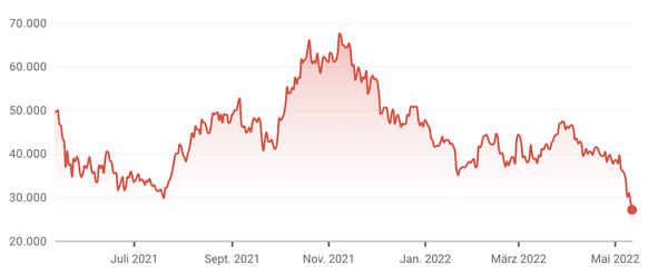 Besonders übel hat es die Krypto-Gemeinde erwischt. Der Bitcoin-Kurs ist gefallen wie ein Stein und befindet sich derzeit deutlich unter 30’000 Dollar, mehr als die Hälfte unter seinem Höchststand. So viel also zum «Bitcoin-sind-das-digitale-Gold»-Geschwätz. (Das richtige Gold, das nur nebenbei, hat wegen der Inflationsgefahr leicht zugelegt.)