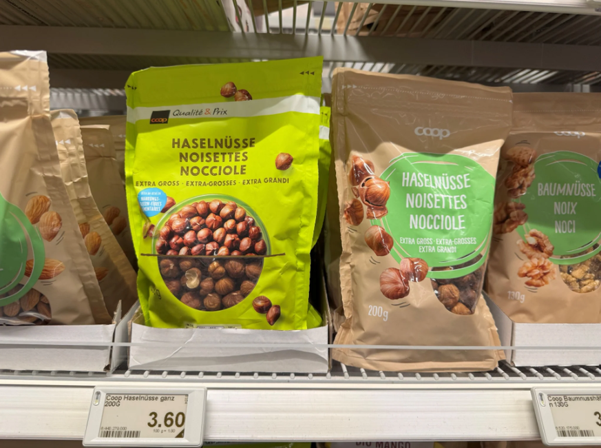 Beim genauen Blick in die Regale zeigt sich nämlich, dass Coop daran ist, den Namen seiner grössten Eigenmarke zu ersetzen und deren Aufmachung zu überarbeiten. Aktuell ist dies beispielsweise beim Sortiment für Zucker, Mehl und Trockenfrüchte zu beobachten. So gibt es die Haselnüsse teils noch unter der bisherigen Eigenmarke «Qualité & Prix», aber bereits auch in der neuen Verpackung und unter der neuen Eigenmarke, die schlicht und einfach «Coop» heisst.