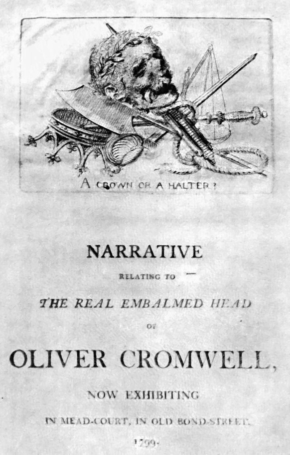 28 Jahre lang warnte Cromwells Kopf die Londoner Bürger davor, gegen die Monarchie aufzumucken. Dann fegte ein Sturm den Schädel vor die Füsse eines Wachmannes, der ihn sofort unter seinem Mantel verbarg und im heimischen Kamin versteckte. Selbst die nun an Türen und Säulen angeschlagenen Suchmeldungen nach dem verloren gegangenen Haupt, die dem Finder eine stattliche Belohnung versprachen, brachten ihn nicht dazu, seinen Schornstein zu leeren.