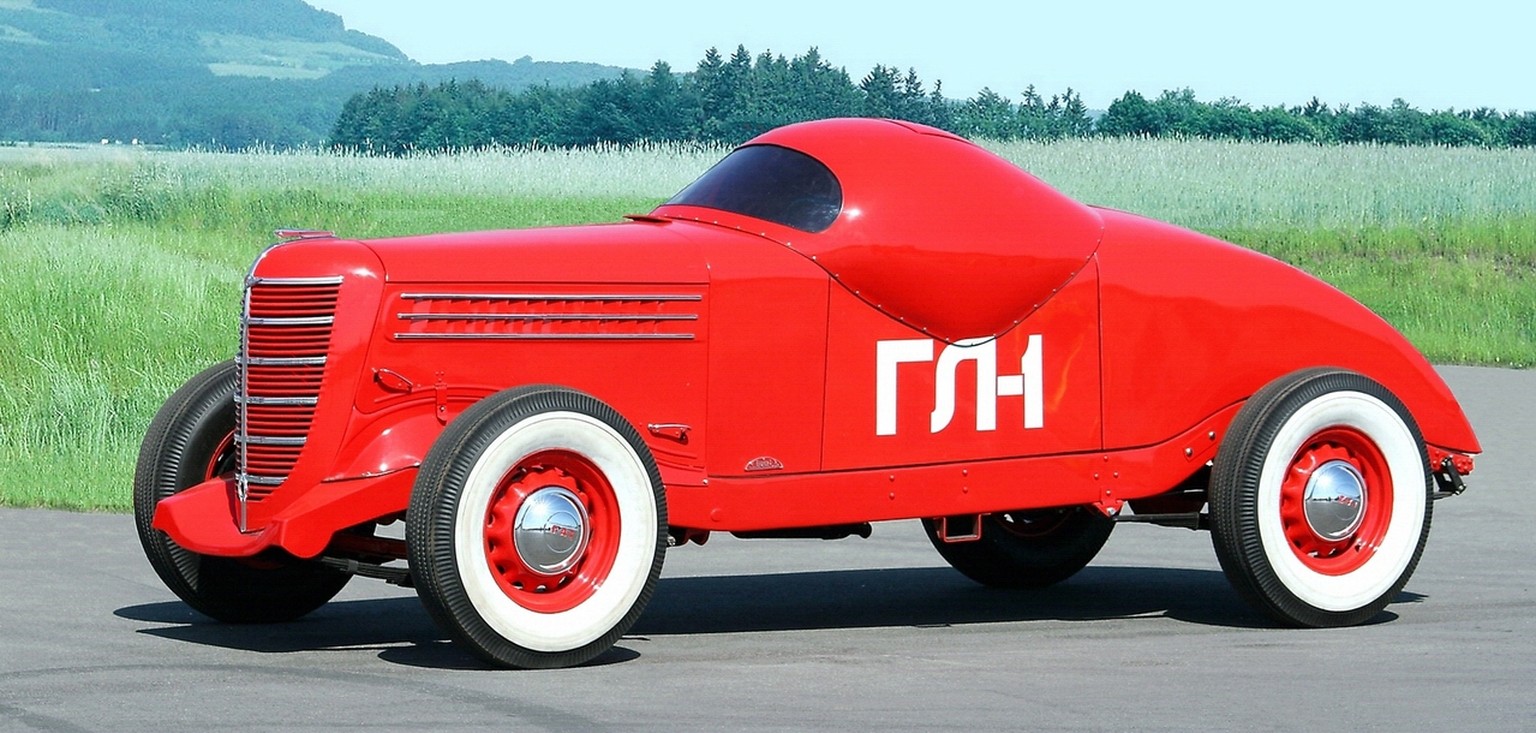 Nein, das ist kein amerikanischer Hotrod der 50er Jahre, sondern der schnellste sowjetische Rennwagen der Vorkriegsära. Der 3,2-Liter-6-Zylinder-Motor lieferte 100 PS bei einer Spitzengeschwindigkeit von 162km/h.