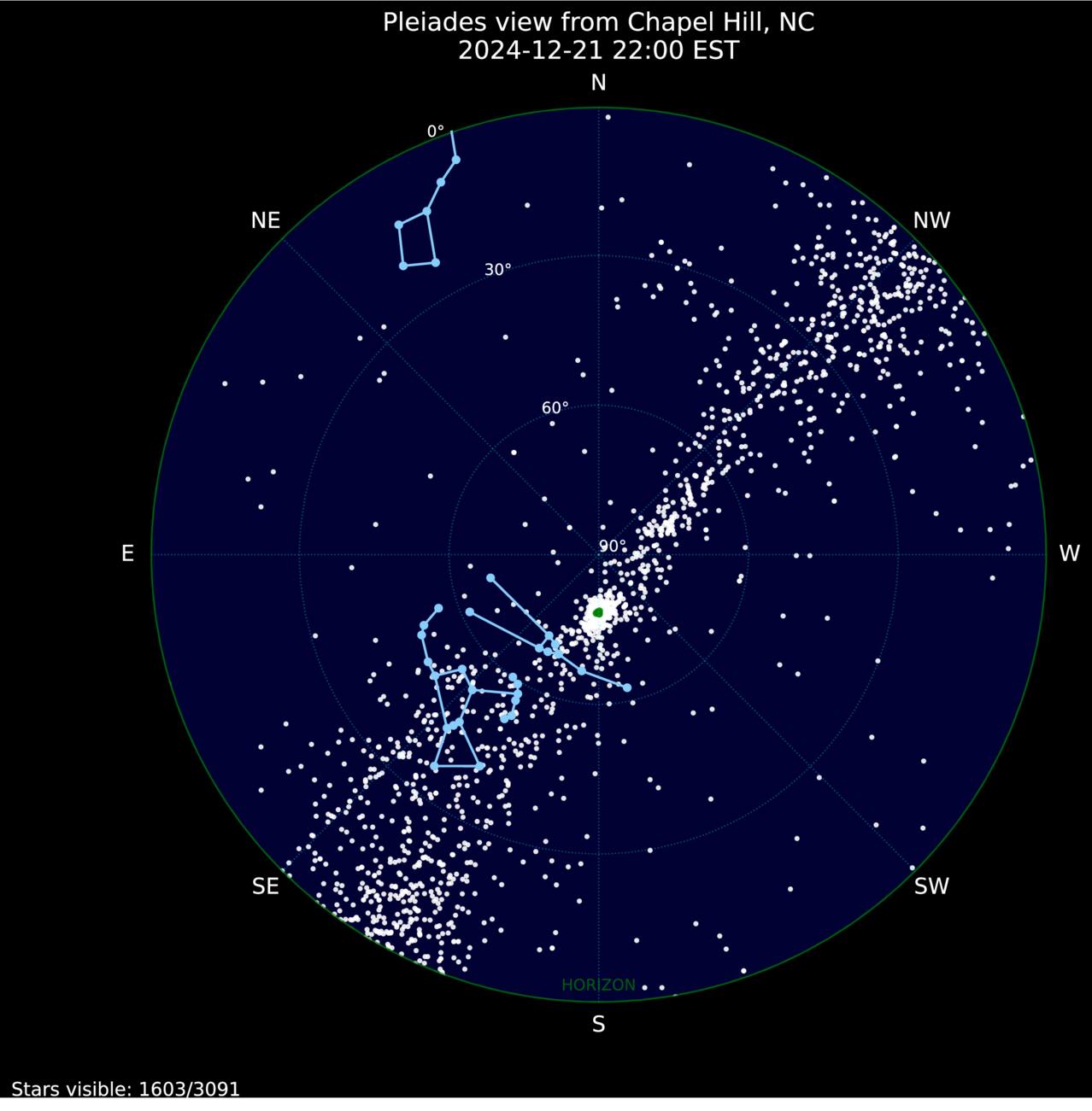 Sie sind von Anfang Juli bis Ende April am nördlichen Abendhimmel als Ansammlung von Sternen sichtbar: die Plejaden, die auch unter den Bezeichnungen «Atlantiden», «Atlantiaden», «Siebengestirn», «Taube», «Sieben Schwestern» oder «Gluckhenne» bekannt sind. Der rund 440 Lichtjahre entfernte offene Sternhaufen liegt im Sternbild Stier und ist Teil der Milchstrasse. Von blossem Auge sind nur sechs bis neun, meist aber sieben Sterne sichtbar, die auch nach einzelnen Plejaden in der griechischen Mythologie benannt sind.
