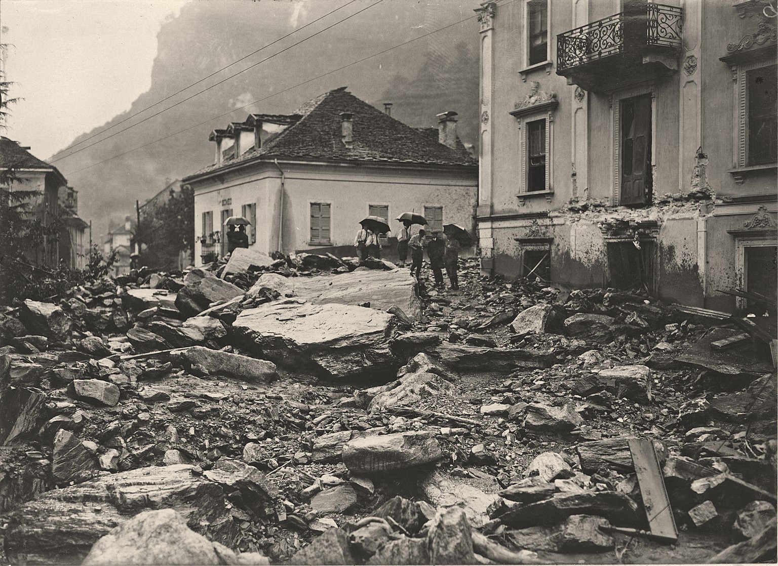 Am 24. September rutschte die Erde über Someo, dem kleinen Tessiner Ort auf der linken Seite der Maggia, und begrub es unter sich. 10 Menschen verloren ihr Leben. Eine Kuh konnte man aus einem Stall befreien, nachdem sie 13 Tage lang eingeschlossen war.