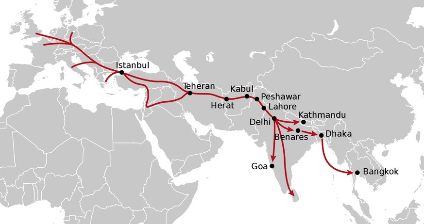 Allerdings dürfte bei weitem nicht jeder Minirock in den Strassen Kabuls damals einer Afghanin gehört haben. Ab Ende der Sechzigerjahre wurde die Stadt zu einem wichtigen Knotenpunkt auf dem sogenannten Hippie-Trail von Europa nach Südasien. Jährlich sollen sich etwa 70'000 Hippies auf ihrer Durchreise in Kabul eingefunden haben.