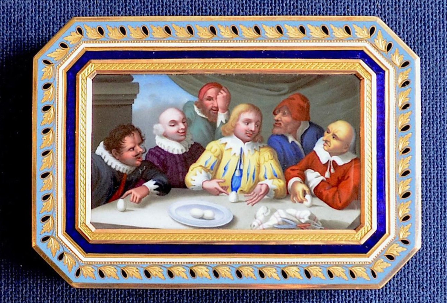 Der König entschied sich für eine zierliche Goldschmiedearbeit, eine goldene Tabakdose (Tabatière), deren Deckel mit dem «Ei des Kolumbus» bemalt ist. Mit diesem Geschenk zeichnete er Fellenbergs Pioniergeist, Tatendrang und Zielstrebigkeit aus. Er würdigte ihn quasi als «Eroberer» auf seinen «Gebieten», als «Entdecker» neuer Ideen und unkonventioneller Methoden, die er beharrlich umsetzte und es auch wagte, zum Erreichen seiner Ziele bisher unbegangene Wege einzuschlagen. Wie Kolumbus hatte auch Fellenberg seine Kritiker – darunter etwa Pestalozzi –, liess sich von diesen aber nicht beirren.