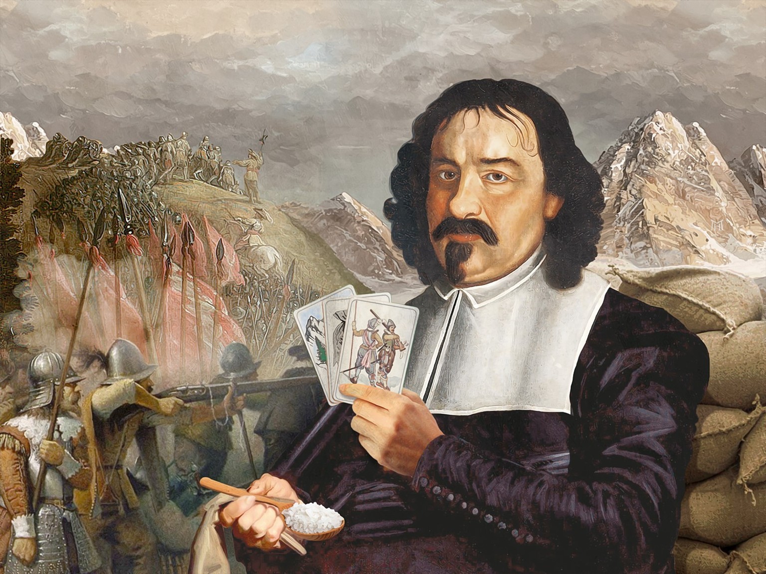 Die Gefahr, in den kontinentalen Krieg hineingezogen zu werden, ist gross um 1639, als Kaspar Stockalper seinen Multikonzern am Simplon aufbaut. Starke Truppenverbände stehen an den Grenzen, mehrfach kommt es zu Übergriffen und Durchmärschen und ständig ist das Alpengebiet mit den wichtigen Pässen im Fokus der Krieg führenden Mächte. Die Eidgenossenschaft ist konfessionell gespalten, aussenpolitisch handlungsunfähig und verfügt nicht über eine zentrale Militärorganisation.