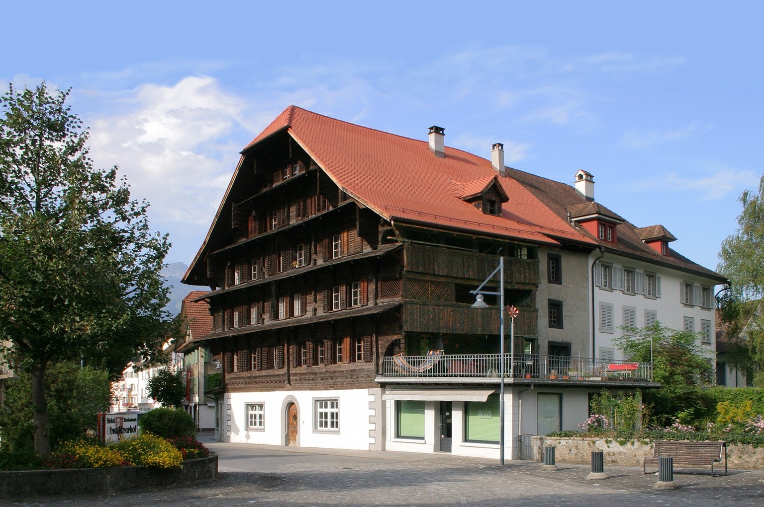 Mittelpunkt von Sarnen ist der Dorfplatz – genauer der Dorfbrunnen, Jahrgang 1604, wie steinerne Ziffern am Trog belegen.