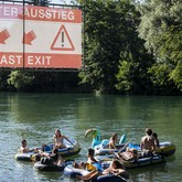 Umweltaktivisten blockieren Quaibrücke und färben Limmat grün