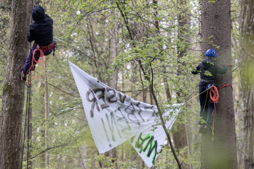 Aktivisten protestieren in Rümlanger Wald gegen geplante Rodungen