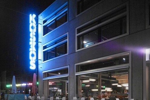 Kreativ-Gang der Migros sprayt Baustellenwand in Zürich orange